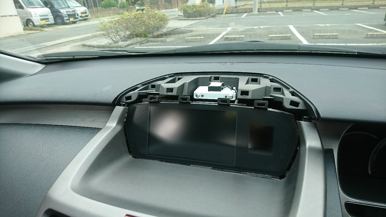 外れにくい場合はパネル下部のナビ操作ユニットとエアコンパネルの間にマイナスドライバーや内張り剥がしを駆使して外しましょうね。