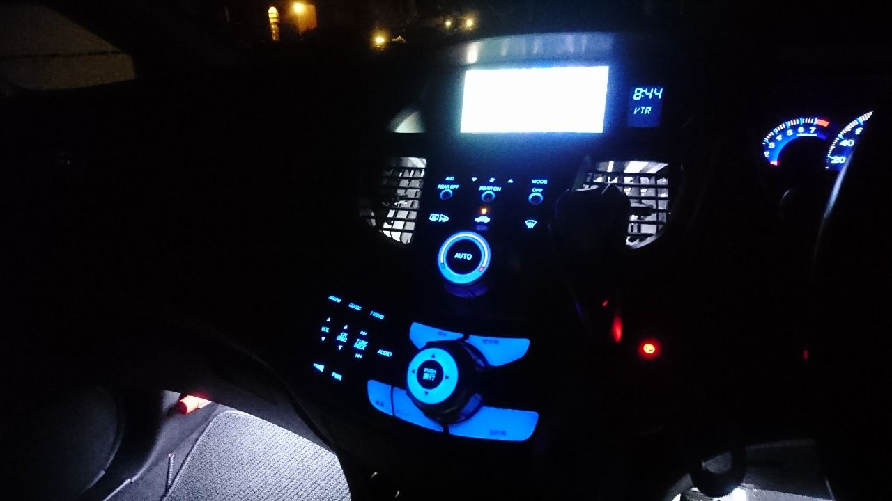 ちなみに電源はインパネの裏に配線を通して先日つけたLEDフットランプから分岐させました。