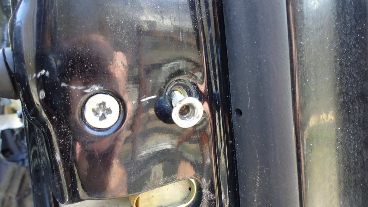 残るはドアロックソレノイドをドアへと固定しているネジを外します。