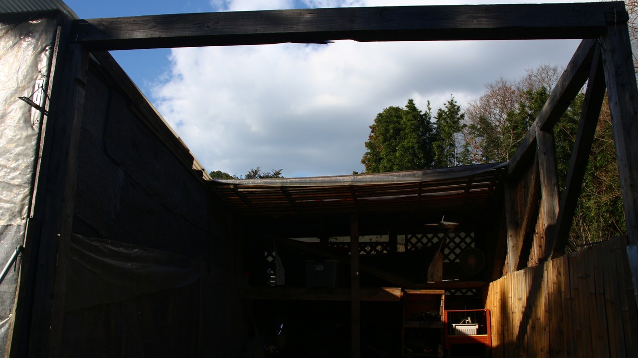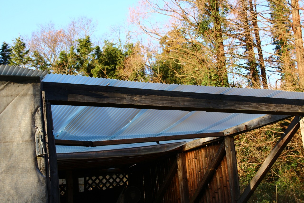 夜勤明けの疲れた体で脚立に登って屋根の取り付けに成功しました!(笑)