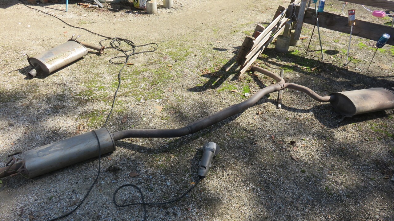 長すぎるオデッセイの純正マフラーもぶつ切りにすることでラパンでも運搬が可能になりました。