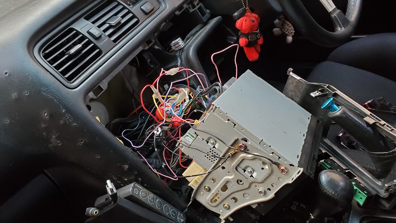 ナビ裏は相変わらず配線だらけで大変なことになっています(笑)