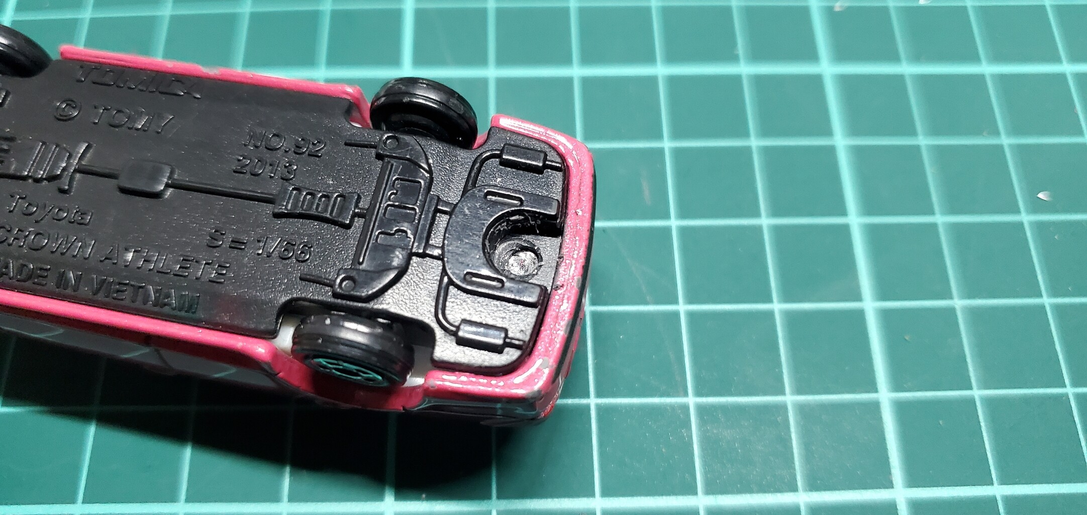 車高を落とすためにはトミカを分解する必要があります。