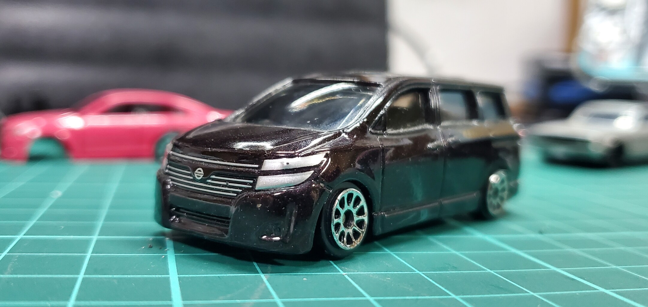 ホットウィールはトミカに比べると少しいかついイメージがありましたが、ホイールをトミカ仕様にすると案外普通の車になります(笑)