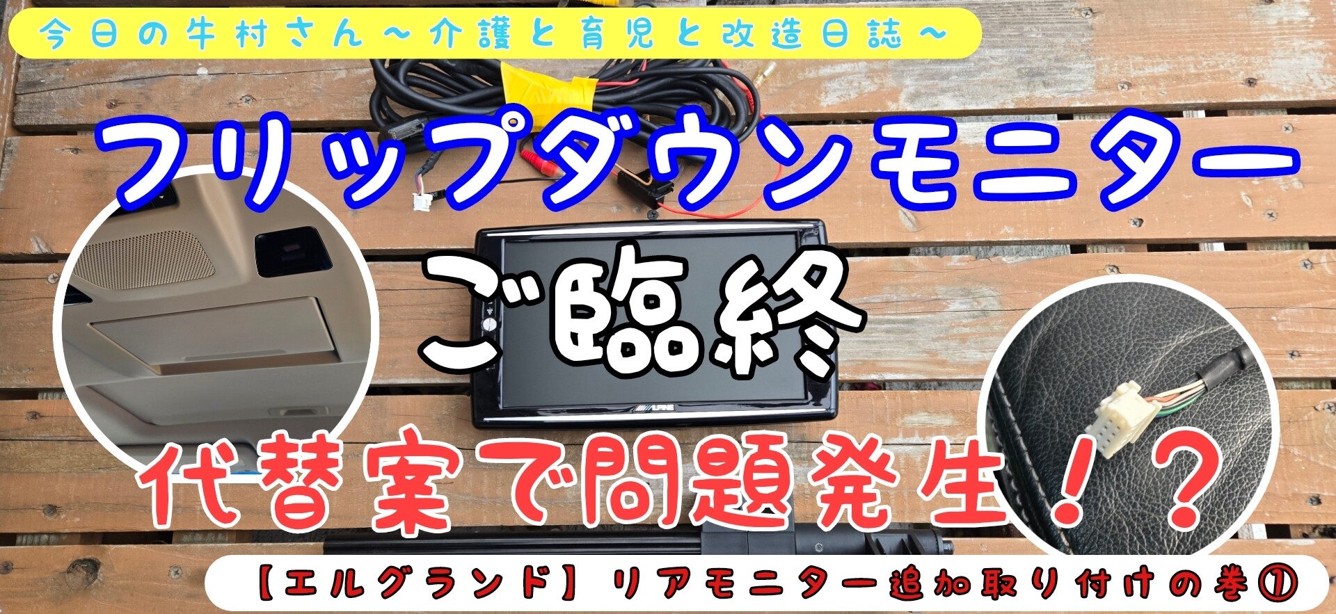 エルグランドの純正フリップダウンモニターなんて5000円ぐらいで手に入ると思っていたのでこれは痛い誤算。