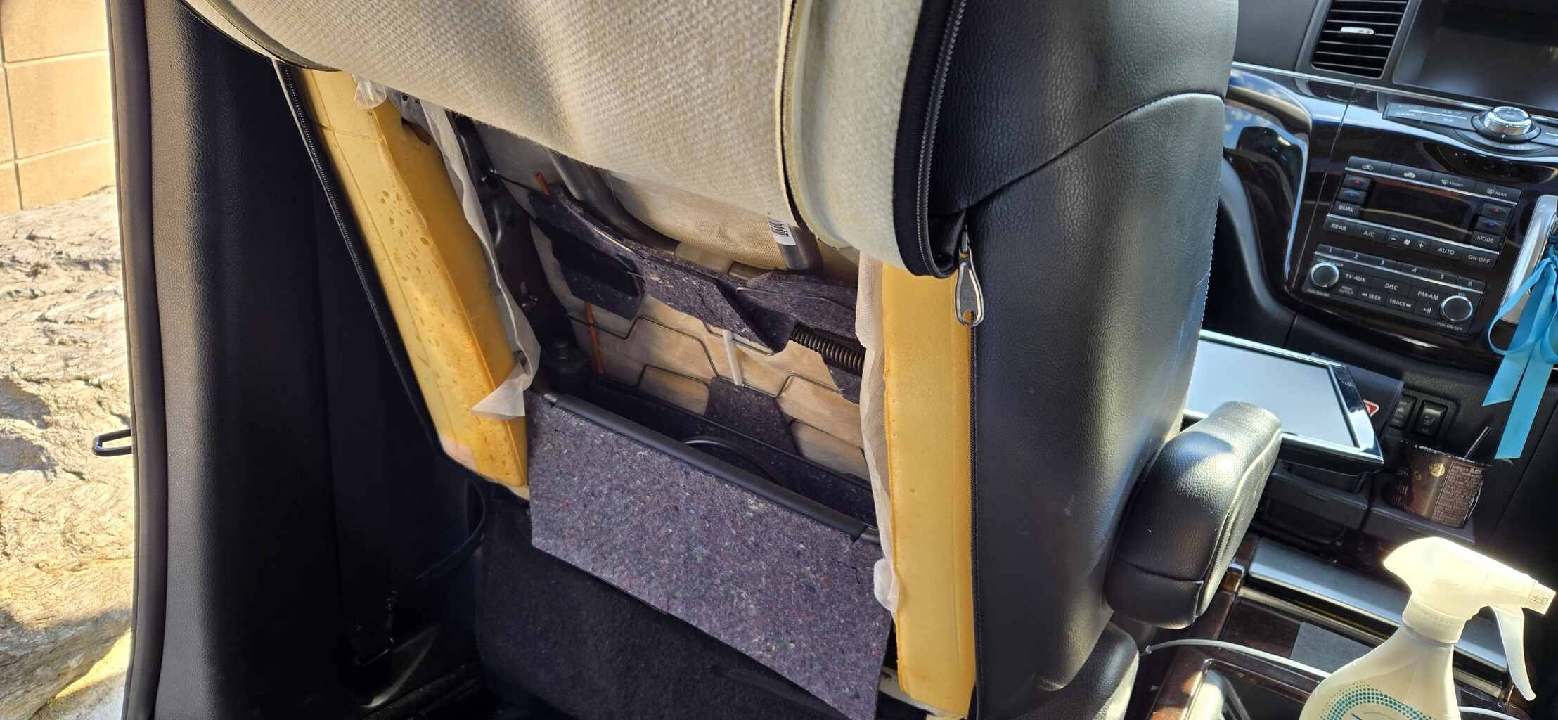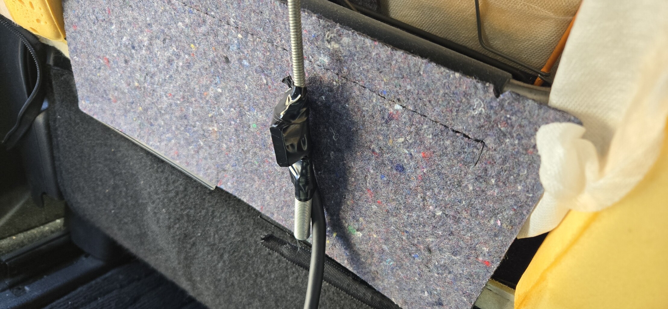 そしてまたぎゅうぎゅうのスポンジの中をかき分けながらシート上部へ配線ケーブルを引き込みます。