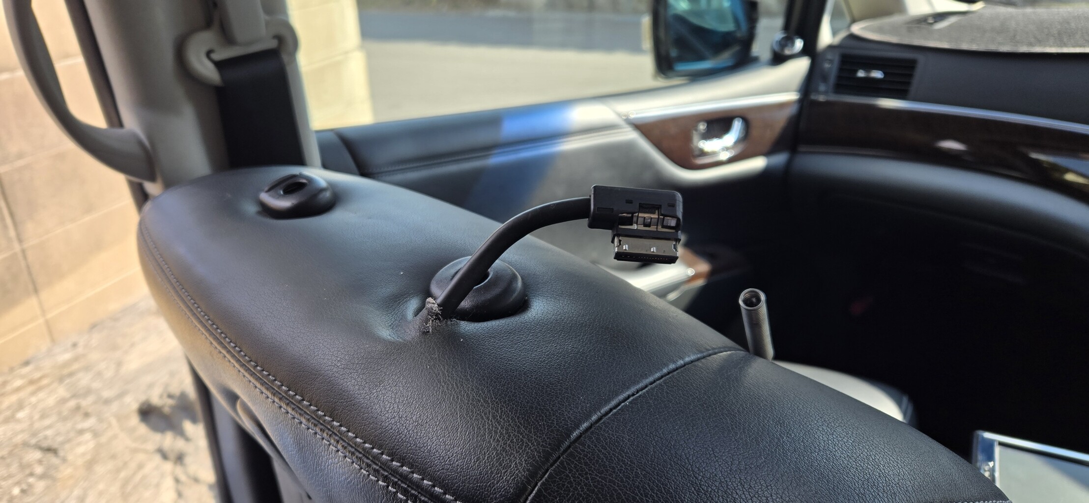 モニターには太めの配線ケーブルが繋がっていてそいつが電源や映像を流すための配線になっているのですが、一応シートに沿わせて目立たないようにしていたのですが、やっぱり配線ケーブルが剥き出しなのは取ってもナンセンス!