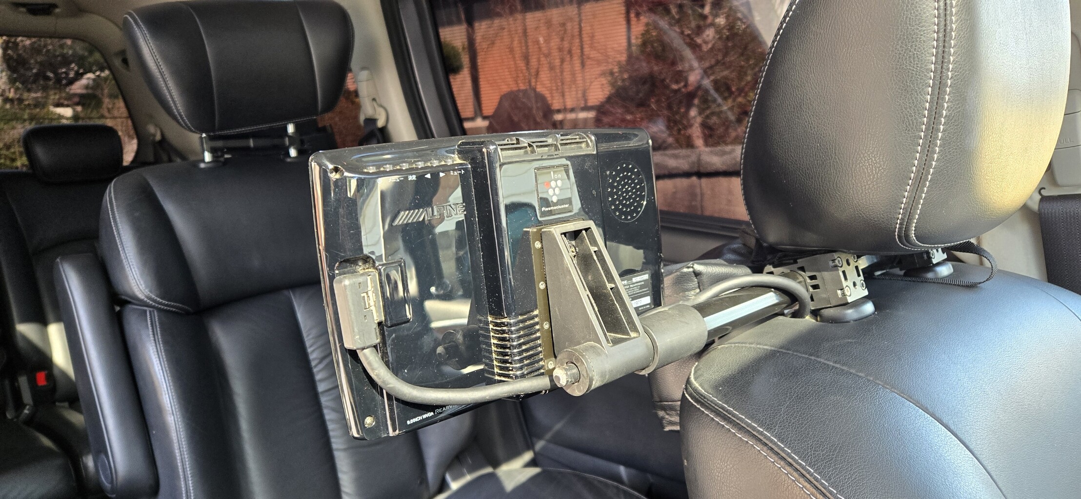 助手席のヘッドレストを外してそこに付属のステーを使ってモニターを取り付けることによって作業は終了!