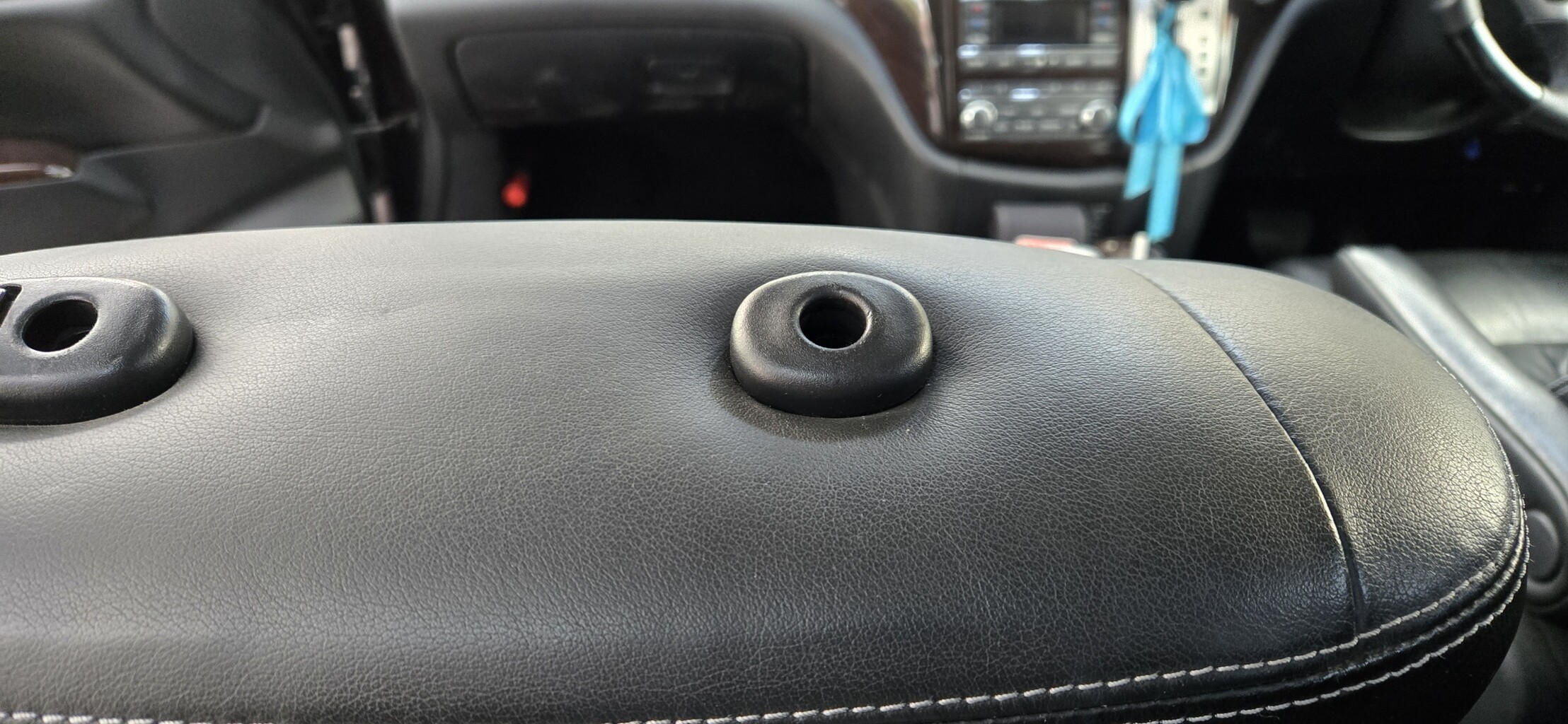 エルグランドは純正で本革のシートになっていますが、シートの後ろ側をよく見てみると端の方にチャックがあります。