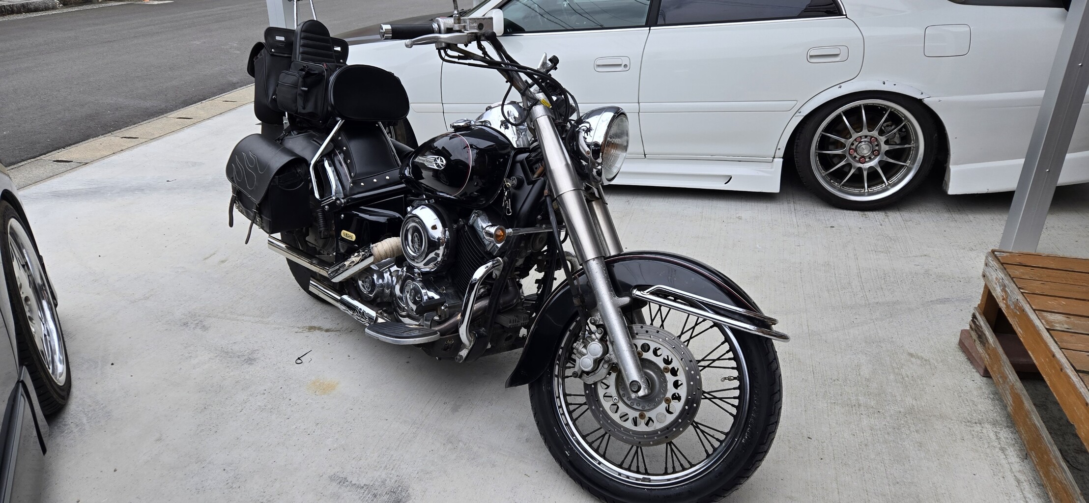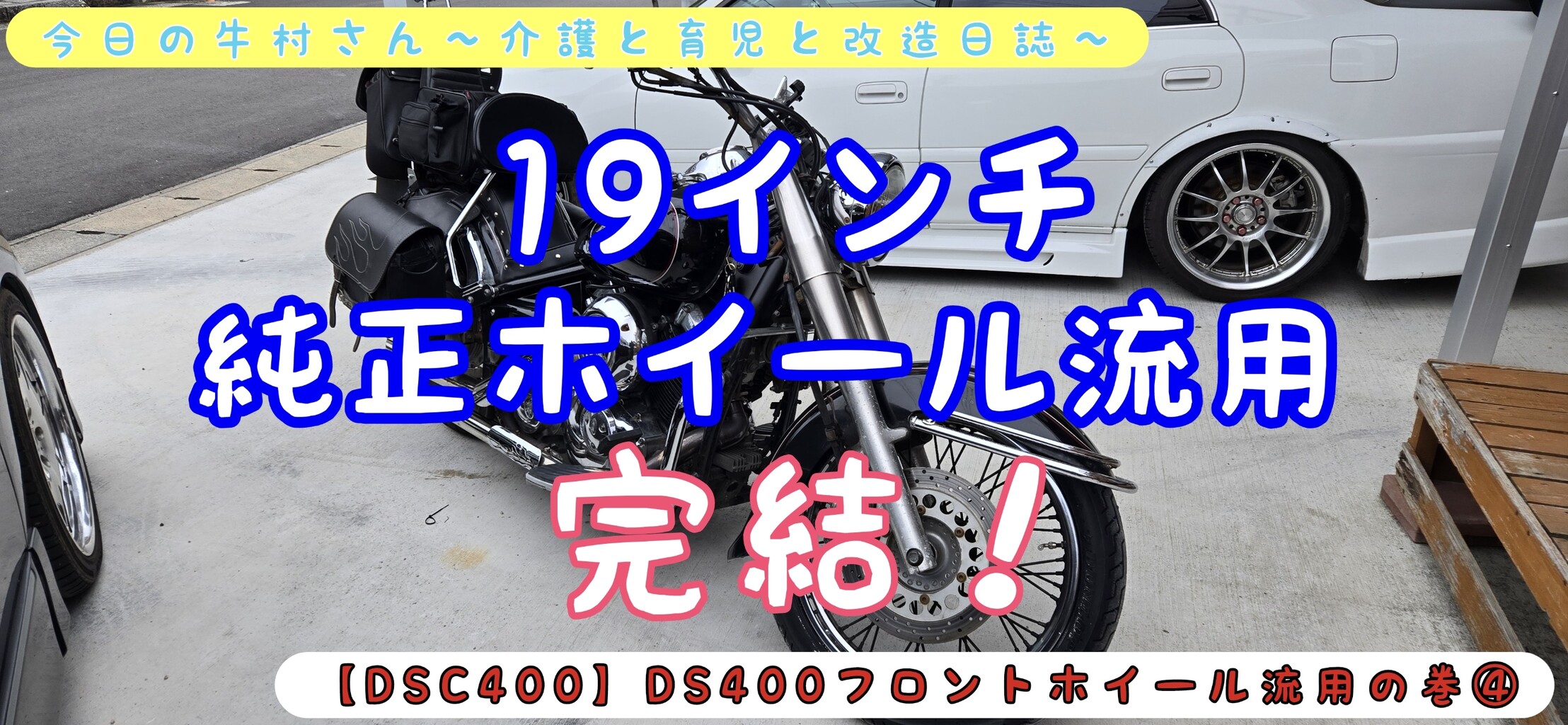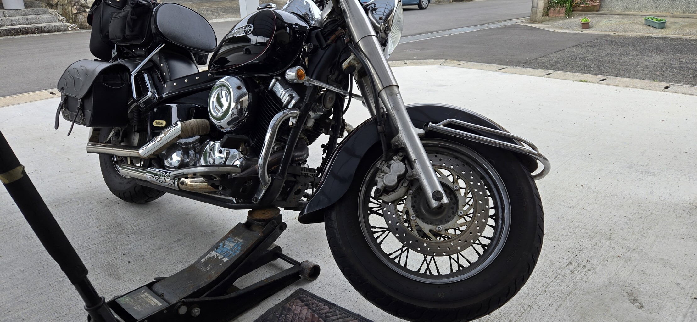 ドラッグスタークラシックにリペアしてタイヤの交換を行ったスタンダード用の19インチ純正を取り付けていきたいと思います!
