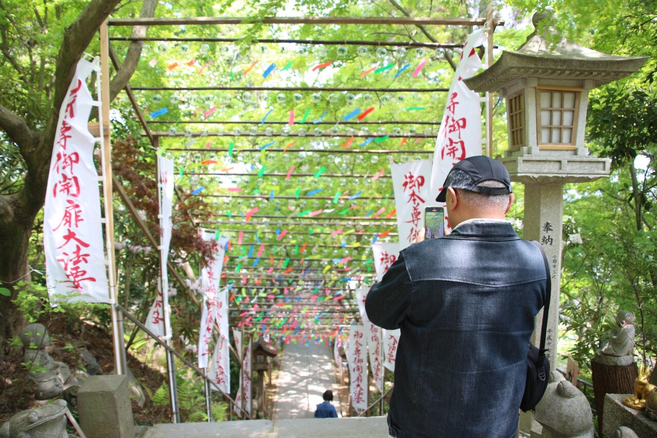 そんな男二人旅、かえる寺の敷地内に飾られてある風鈴に心奪われていました。