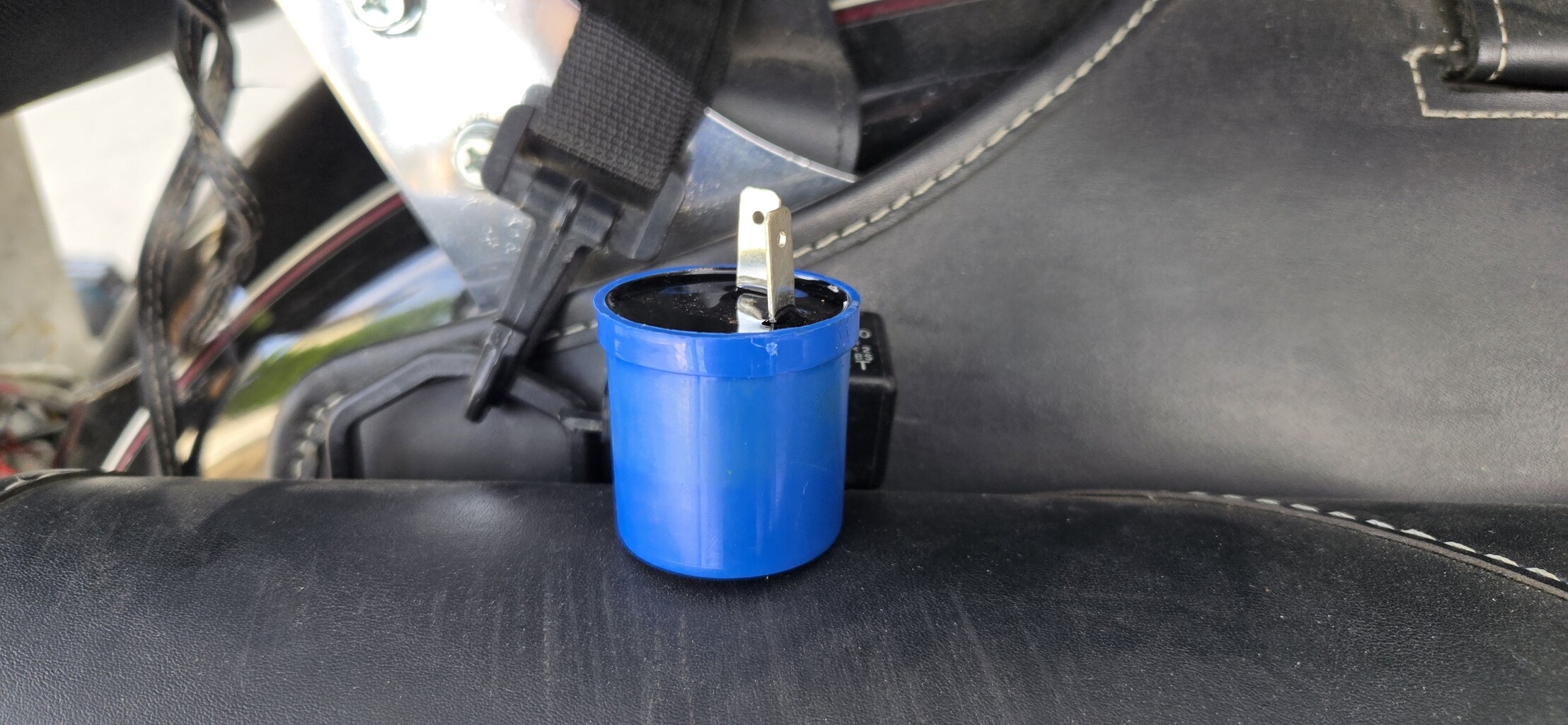 抵抗値を間に追加してやるかウインカーリレーをLED対応のものに交換してやるかの二択ですが、ガレージを漁っていたら怪しいウインカーリレーを発見したのでそいつに交換してみようと思います。