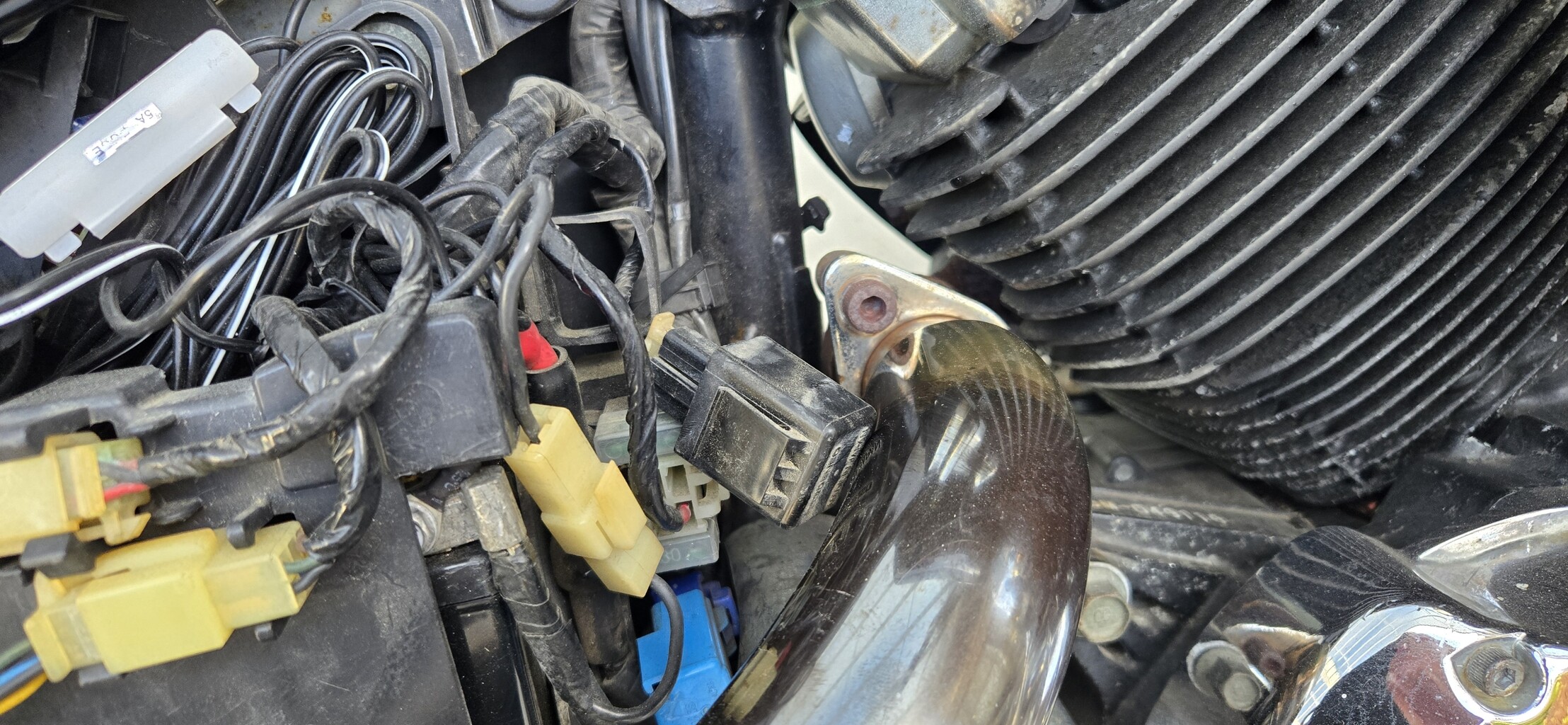ドラッグスターのウインカーリレーはバッテリーケースの中にあります。
