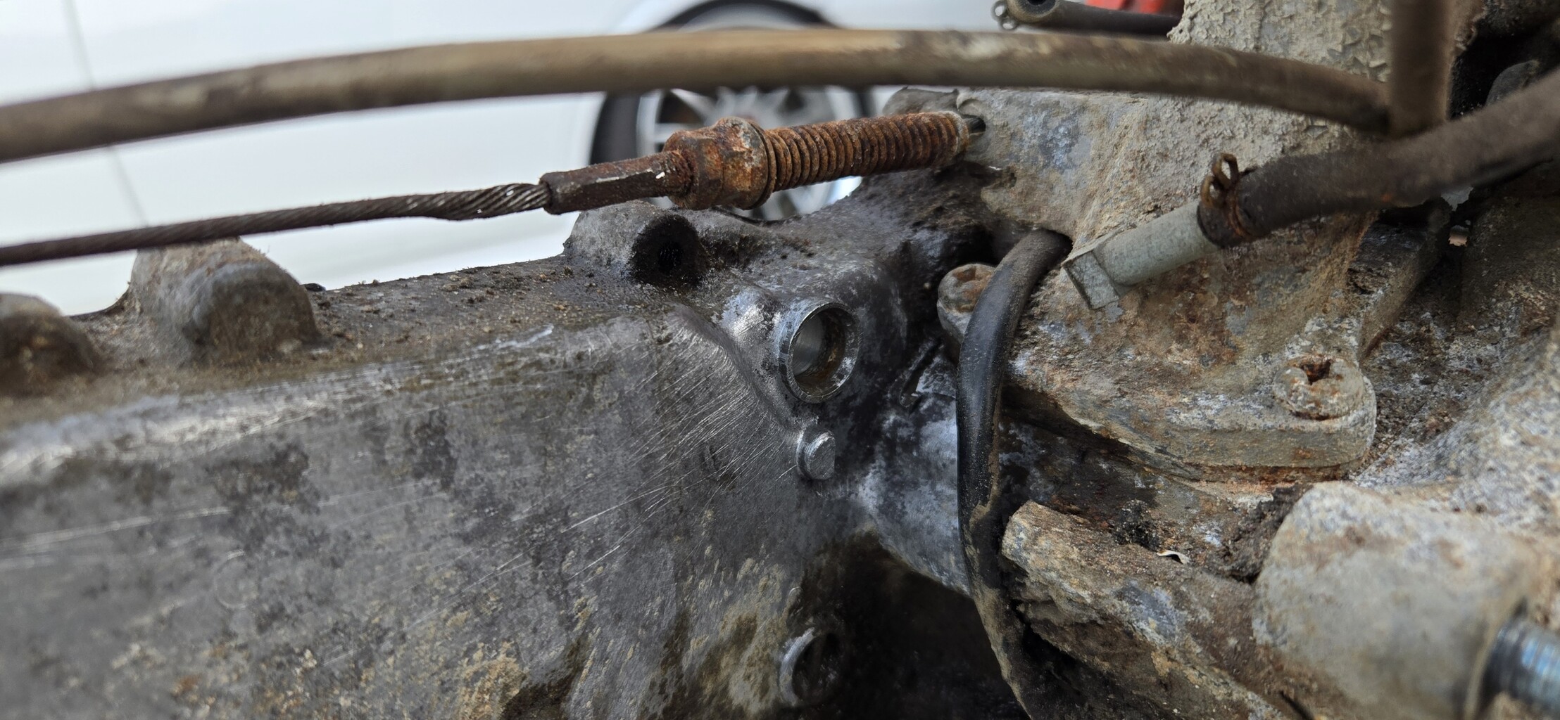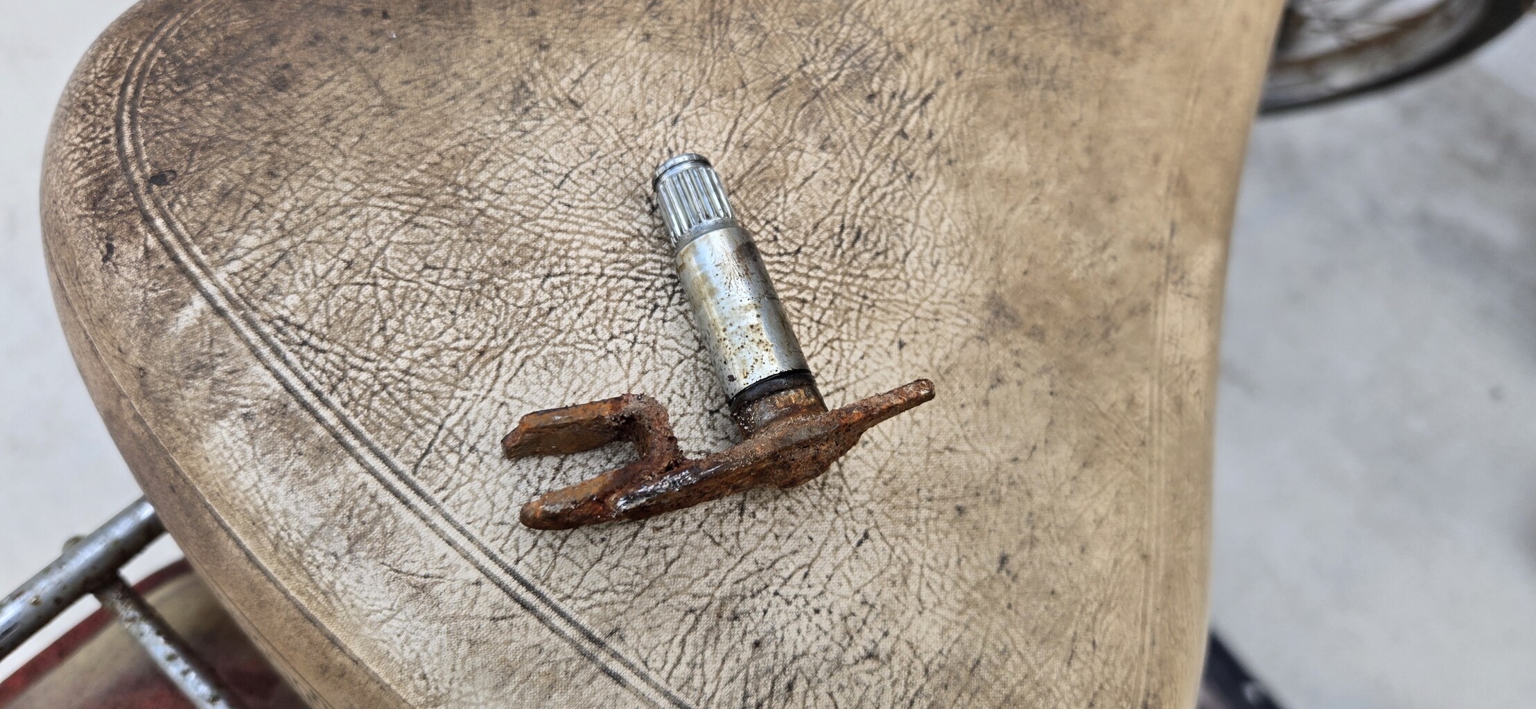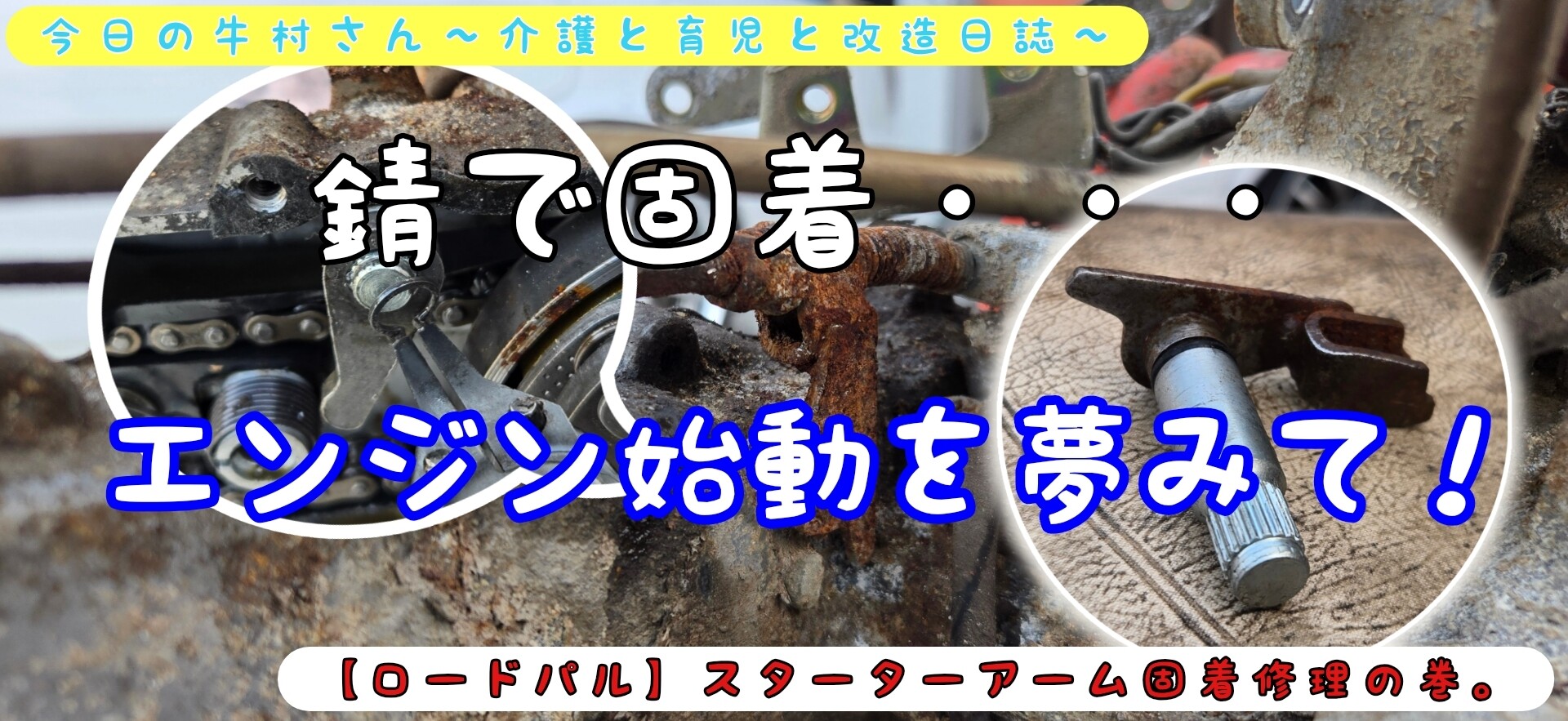 こいつが錆びついていることによって、こいつに連動しているリアブレーキが動かず、スターターアームが使用不可ということです。