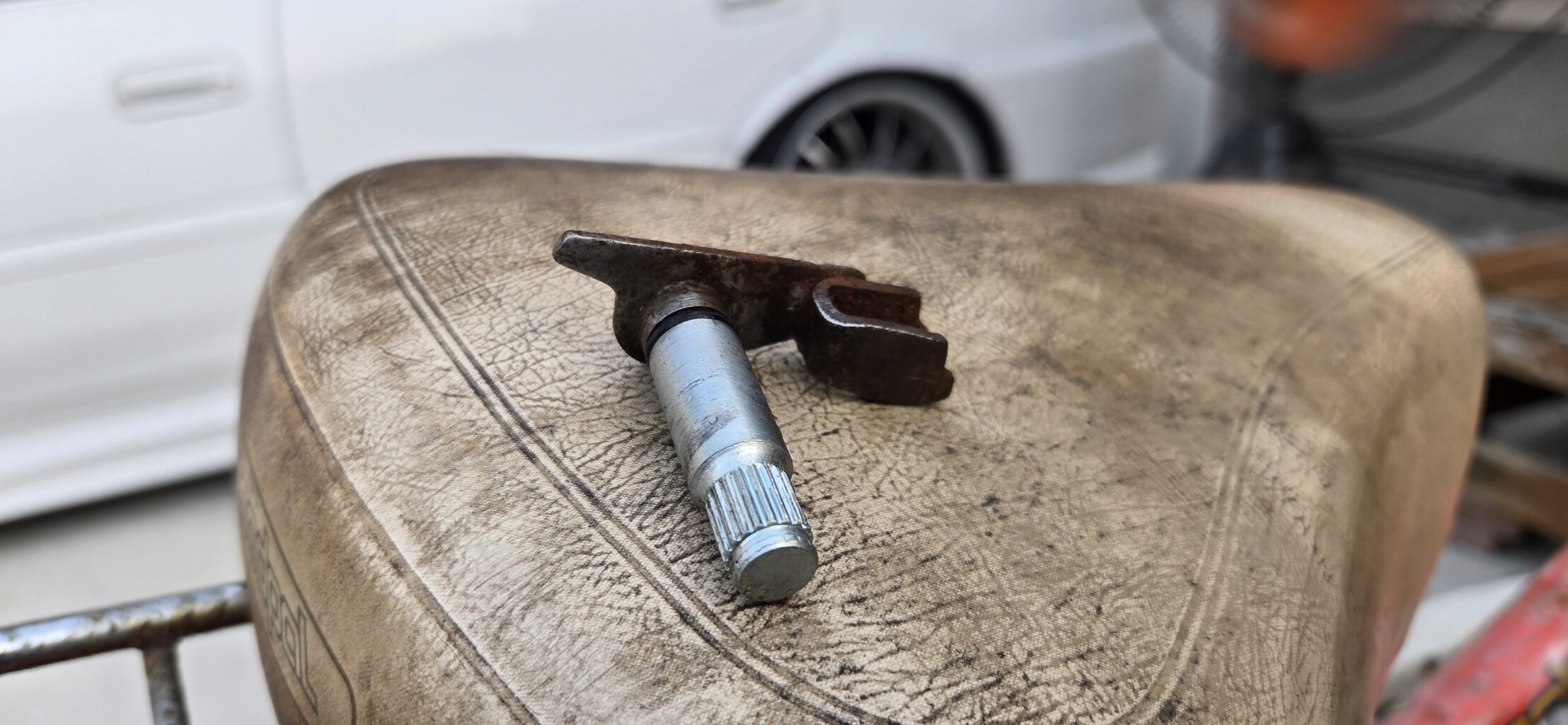 写真の真ん中に写っているレバーがロードパルのエンジン始動を行うための最重要パーツであるスターターアームです。
