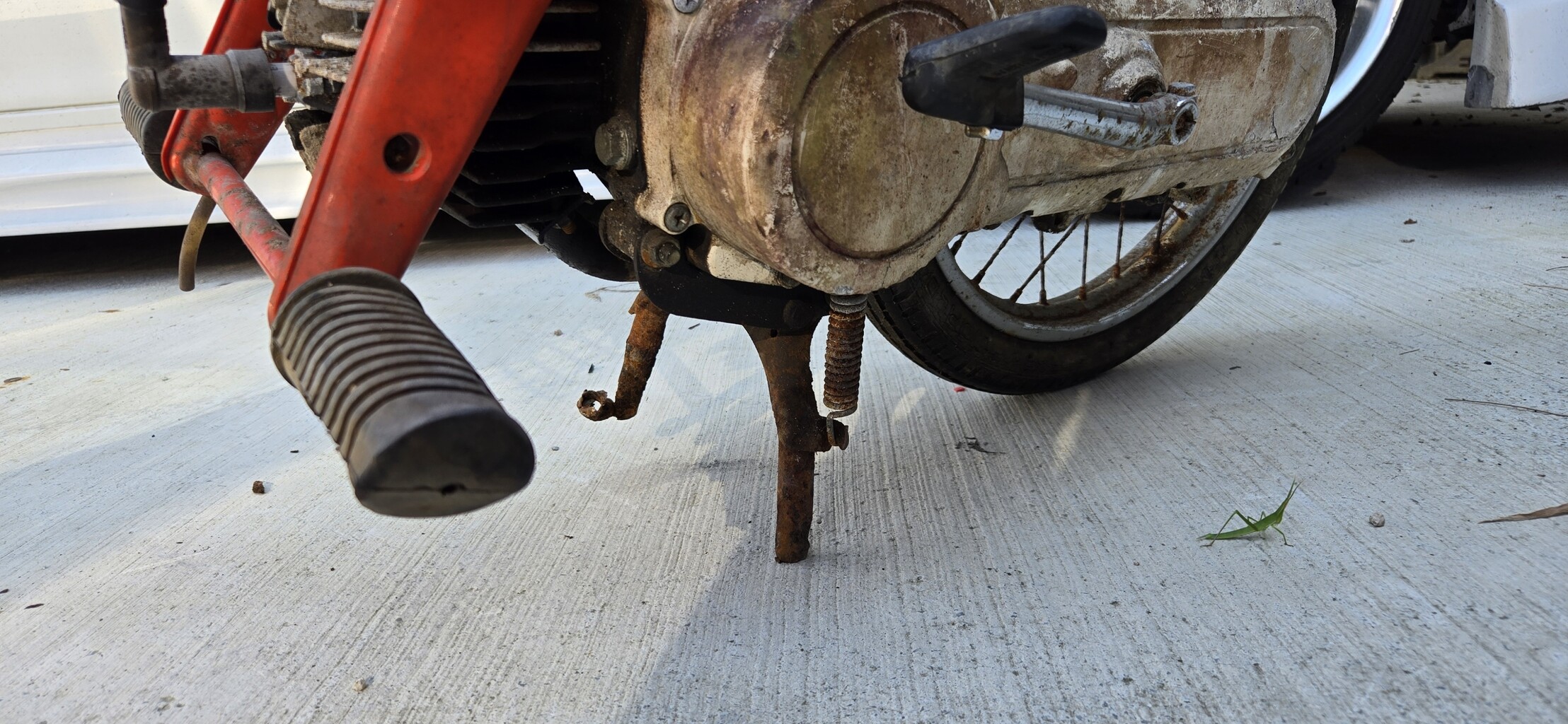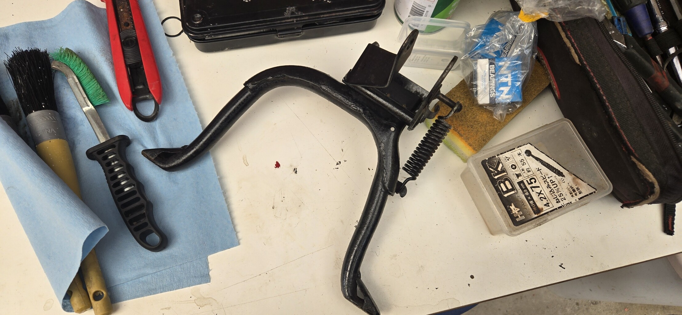 元々ついていたボロボロなスタンドを固定しているボルトとナットを外して新しいスタンドに交換してやるだけ!