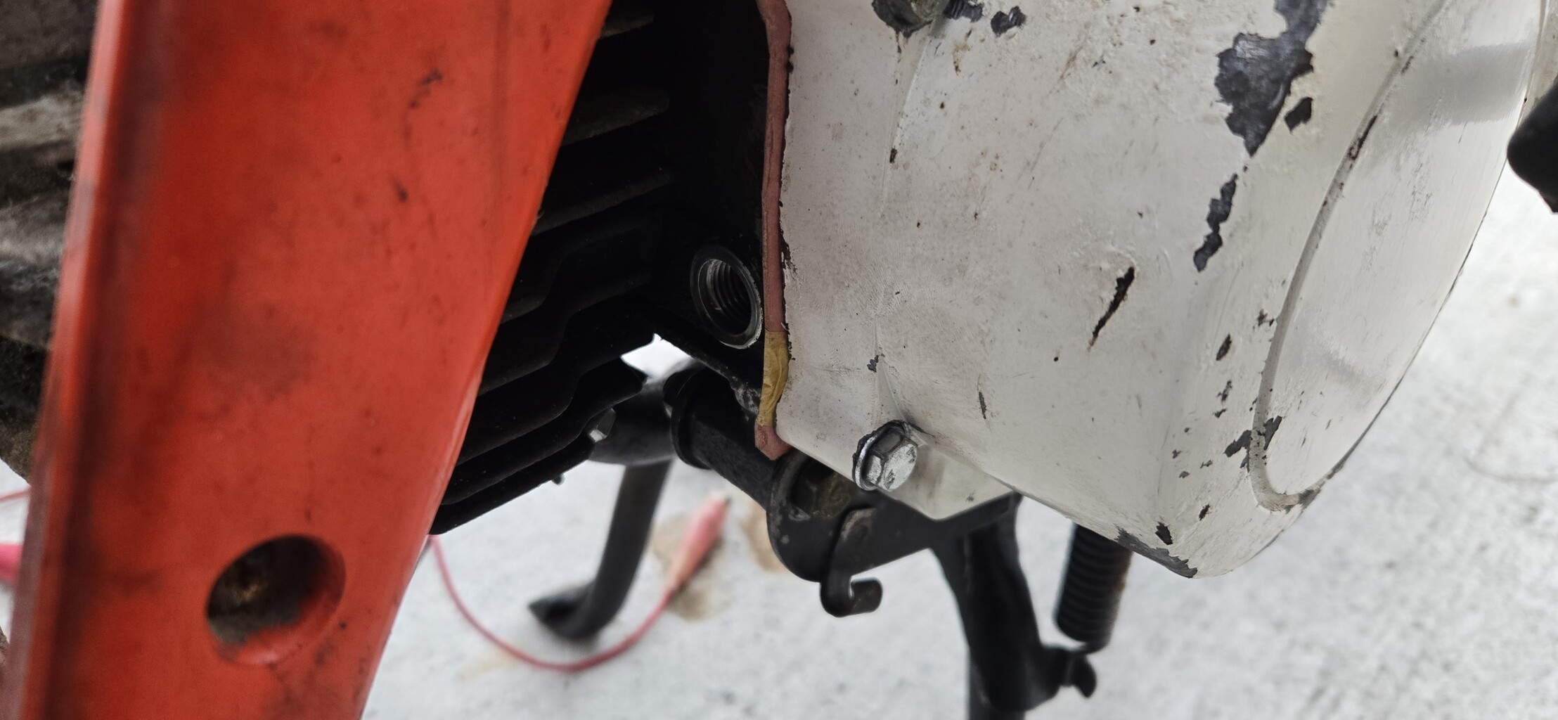 クランクケースの前側にドレンボルトがあるのでそこからオイルを注入します。