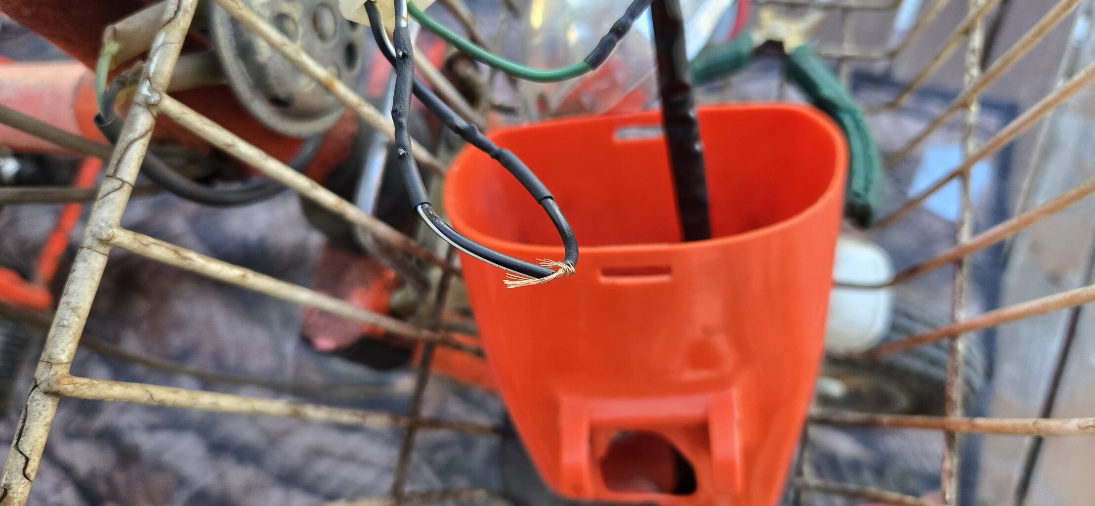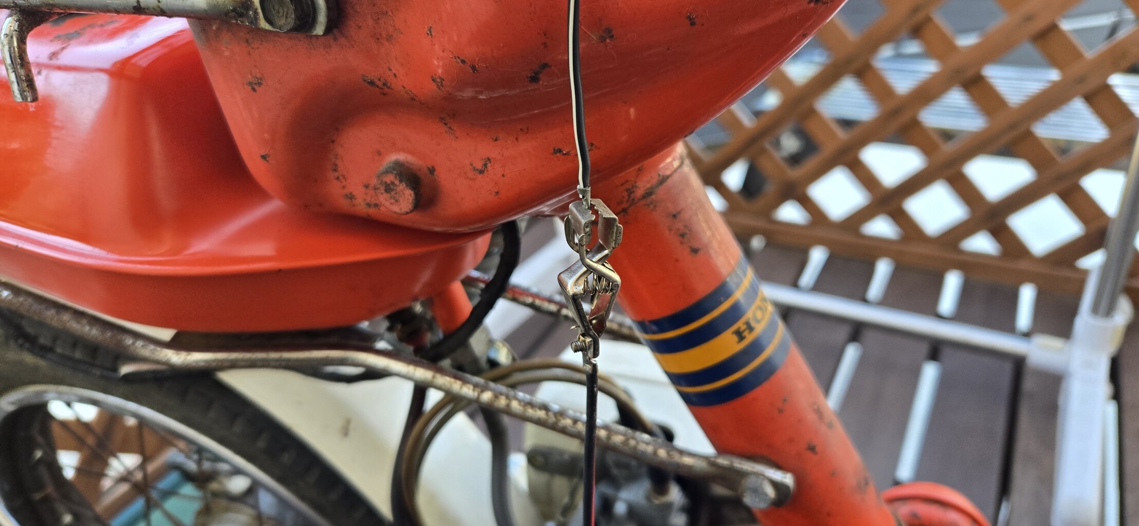 ちゃんと配線すればいいもののテストのためだけなのでバッテリーから電源を拝借するクリップを使用してプラグの配線をジェネレーターからくる配線に繋いでやります。