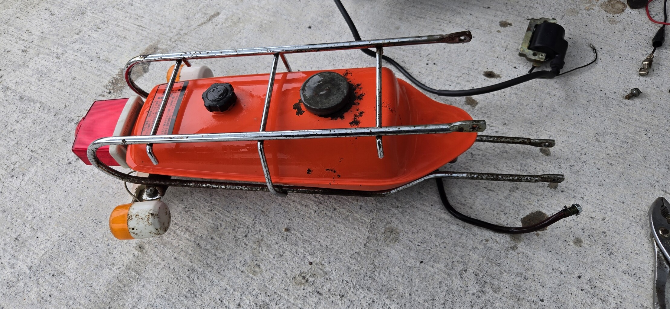 ・・・と、その前に、燃料タンクがバチクソ汚く、ガソリンを入れてしまうと取り外して洗浄するのが困難になるので綺麗にしていきます。