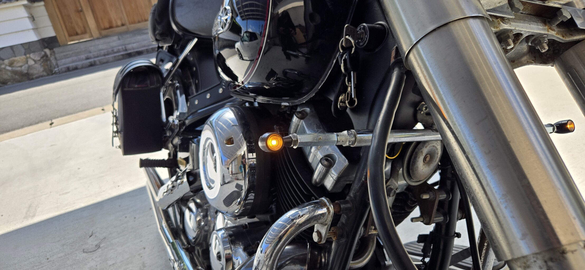まぁ高千穂ツーリングでのトラブルでヘッドライトは電球だけはLEDになっているので、フロントのウインカーのみ電球の状態ですね。