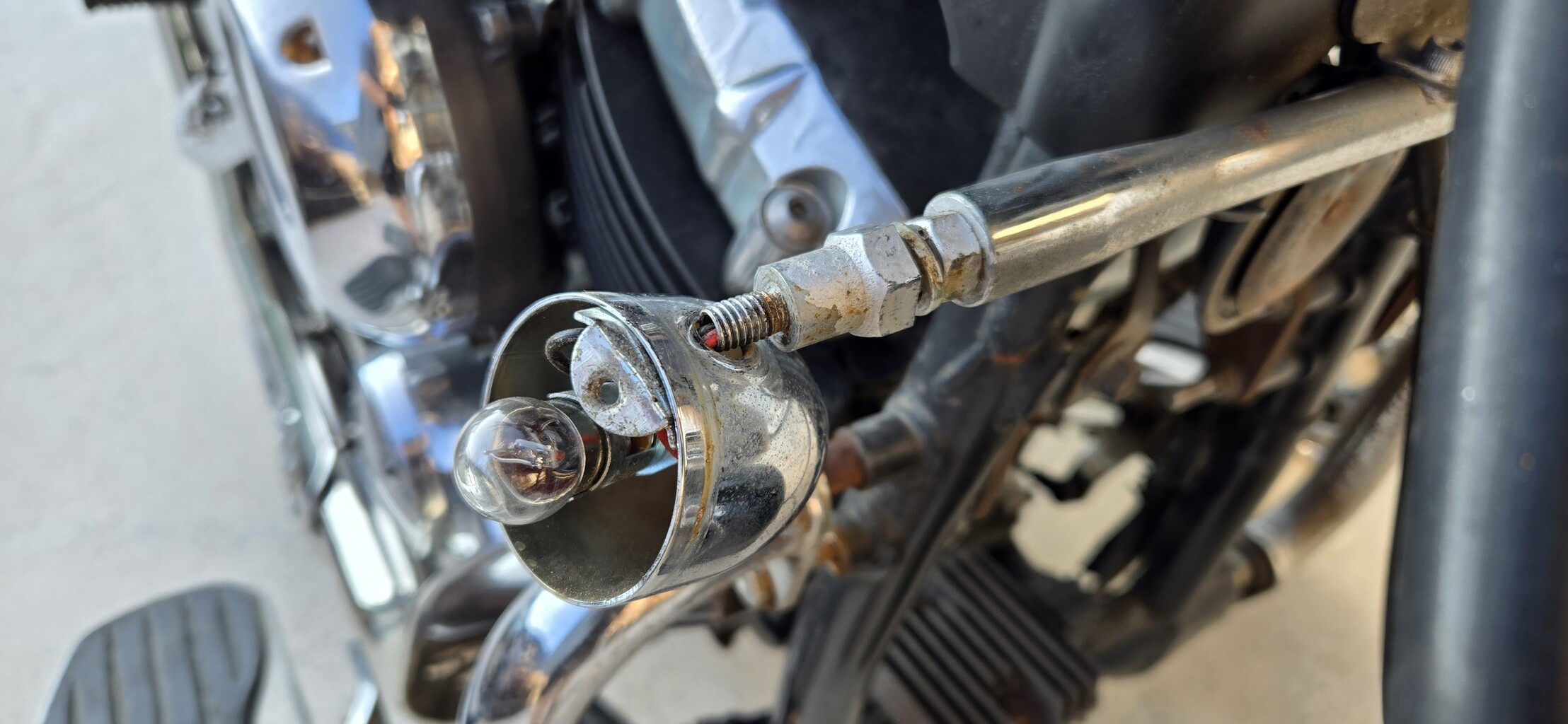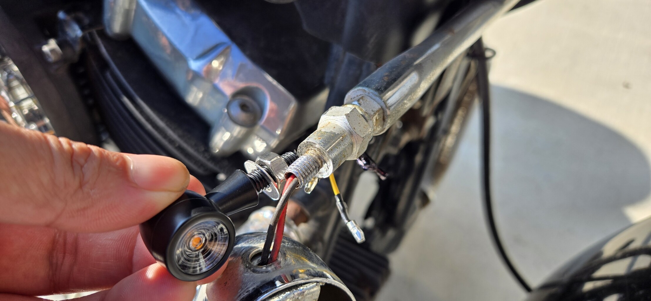 ちなみにウインカーステーの端は雄ネジになっていて、LEDウインカーも雄ネジ。
