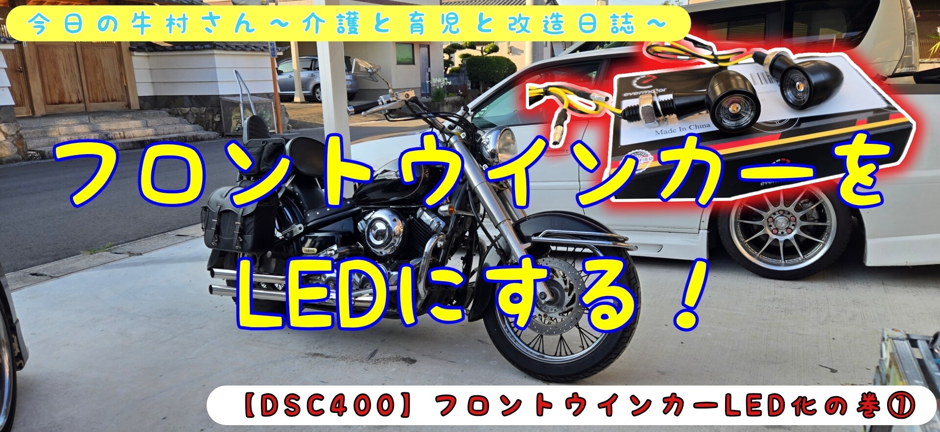 先日の高千穂ツーリングから戻ってきてからの話になるのですが、リアのテールランプとブレーキランプはLED化していたのですが、フロントの灯火類は普通の電球のまま・・・。