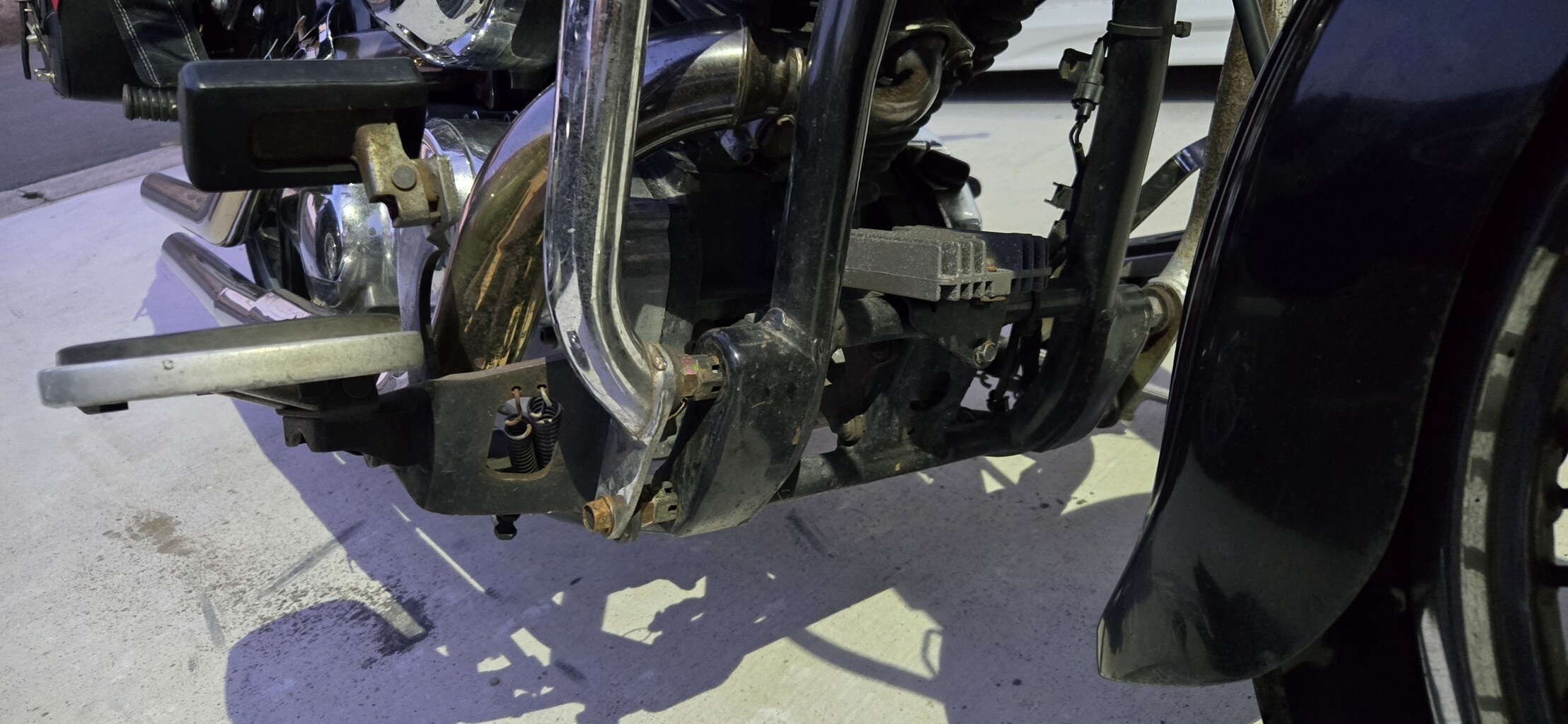 フットボードを固定するボルトと同じボルトなので、外すと結構ごっそりといろんなパーツが外れます。