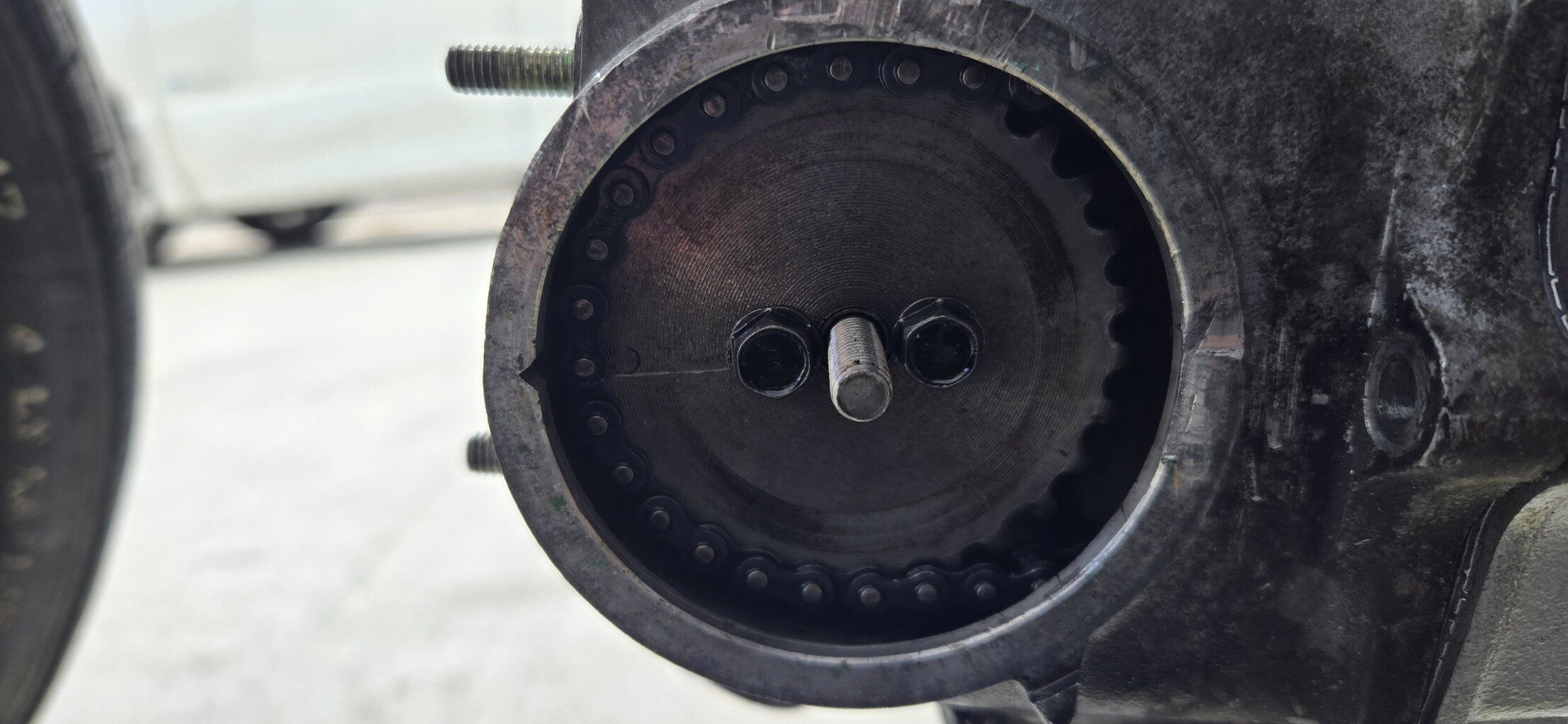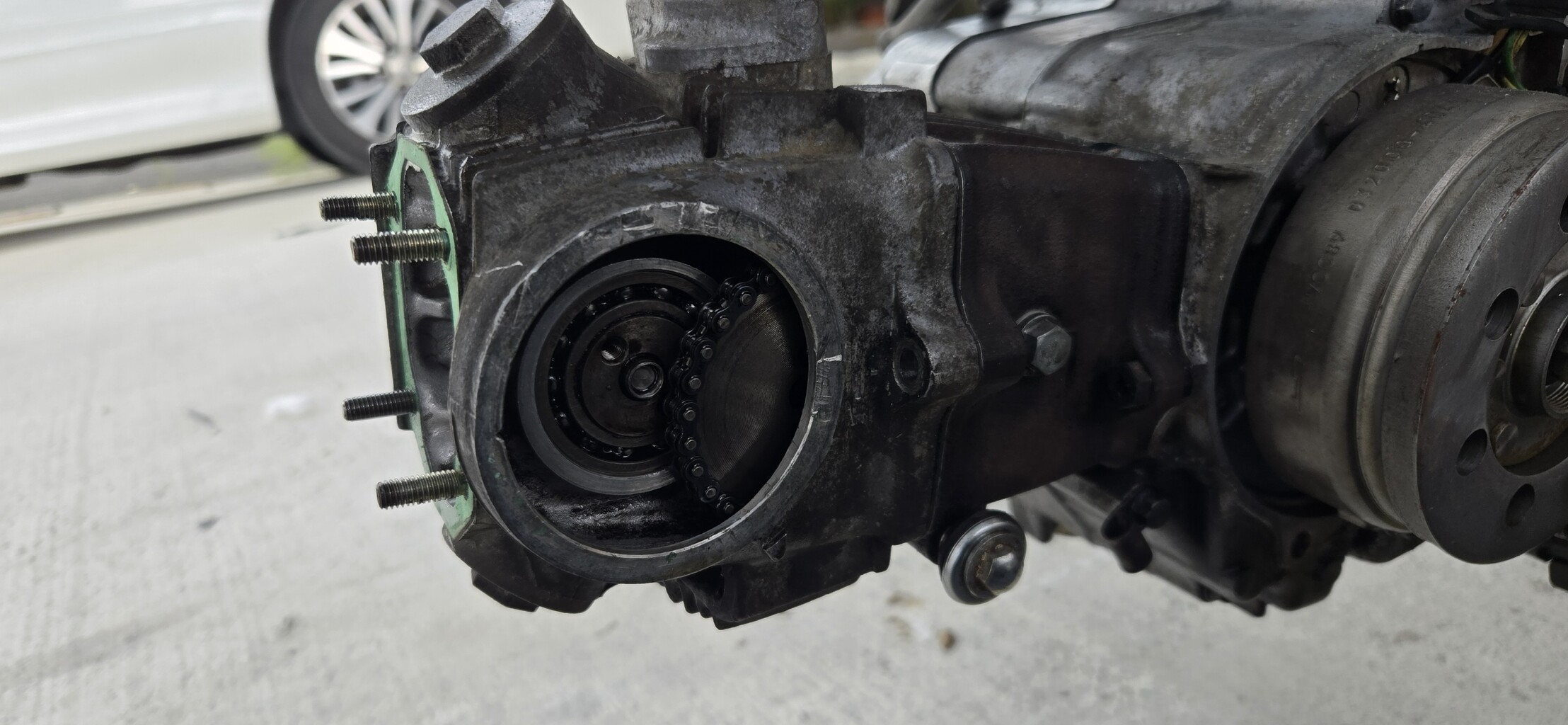 シリンダーヘッドを外してサイドカバーを開けてギアを外します。
