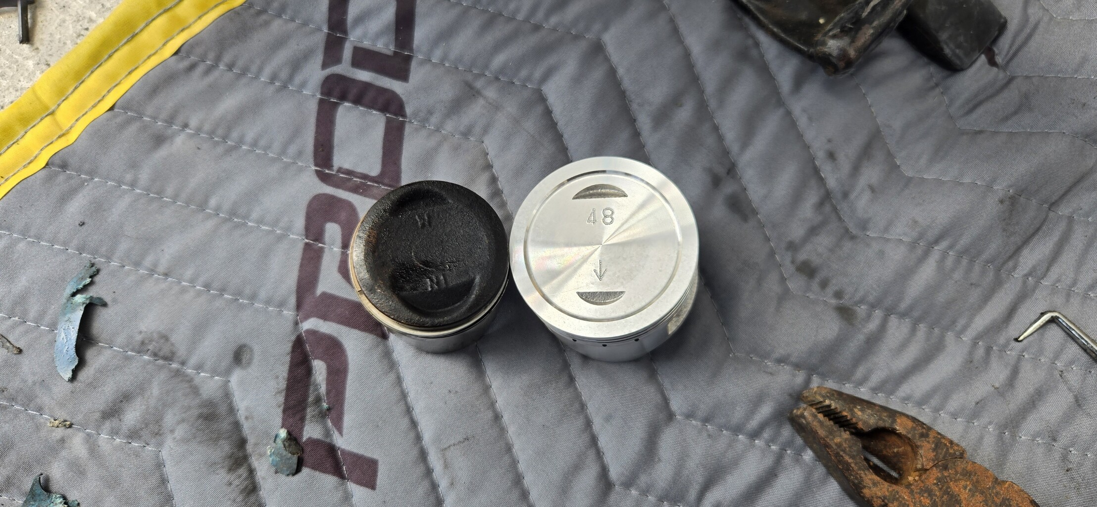 左が純正50ccのピストン、右がキタコ75ccのピストン。